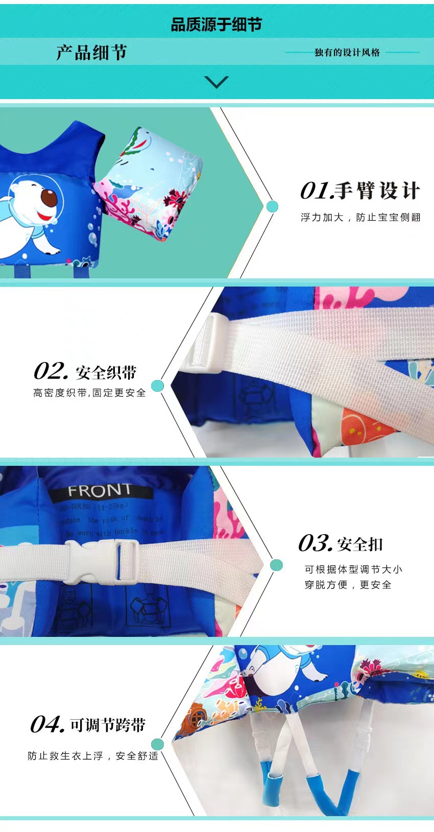 Children's Handmade Breathable Lead With Collapsible Hand Sleeves Outdoor Sun Protection Swimming Float Suit Aid Swimsuit Vest Life Jacket